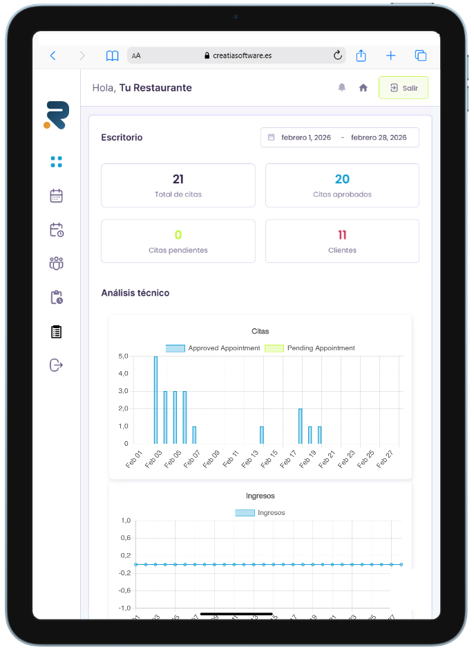 Optimice el margen neto de su negocio mediante una arquitectura digital avanzada diseñada para la monitorización en tiempo real, la reducción de no-shows y el control absoluto de sus centros de consumo. Solicitar AuditoríaSoliciatar DemoBlindaje de Beneficios